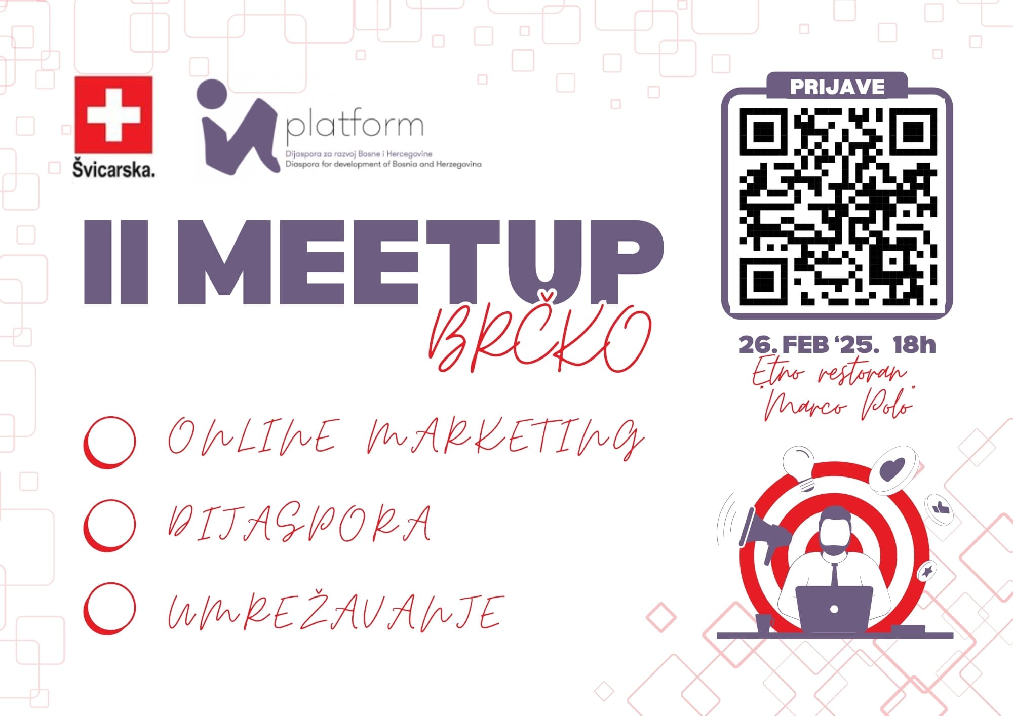 POZIV NA “II MEETUP BRČKO”: ONLINE MARKETING I DIJASPORA – ISKUSTVA, PRILIKE I UMREŽAVANJE