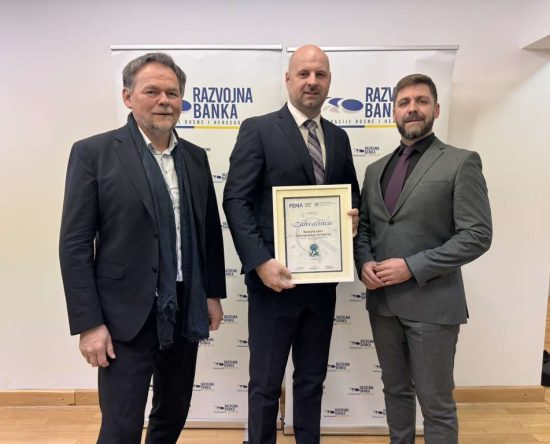 Federalna novinska agencija (FENA) uručila je zahvalnicu Razvojnoj banci Federacije Bosne i Hercegovine za doprinos i podršku organizaciji konferencije „Mediji i turizam“, održane 23. listopada u Parku prirode Hutovo blato. Zahvalnicu je u ime Banke preuzeo član Uprave Dalibor Milinković, a uručili su mu je direktor FENA-e Elvir Hadžiahmetović i njegov zamjenik Ilija Musa. Konferencija, […]